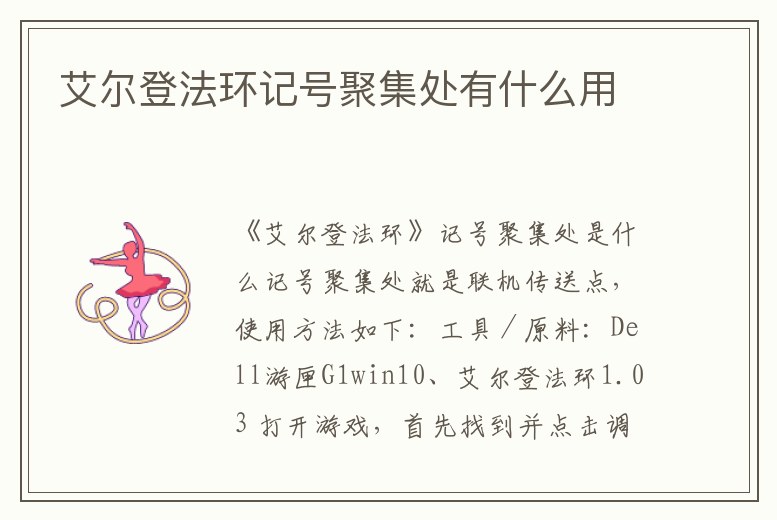 艾爾登法環(huán)記號(hào)聚集處有什么用
