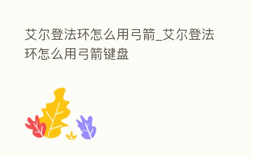 艾爾登法環怎么用弓箭_艾爾登法環怎么用弓箭鍵盤