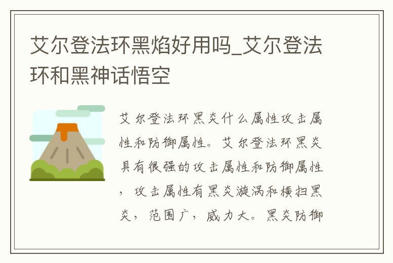 - 艾爾登法環(huán)黑焰好用嗎_艾爾登法環(huán)和黑神話悟空