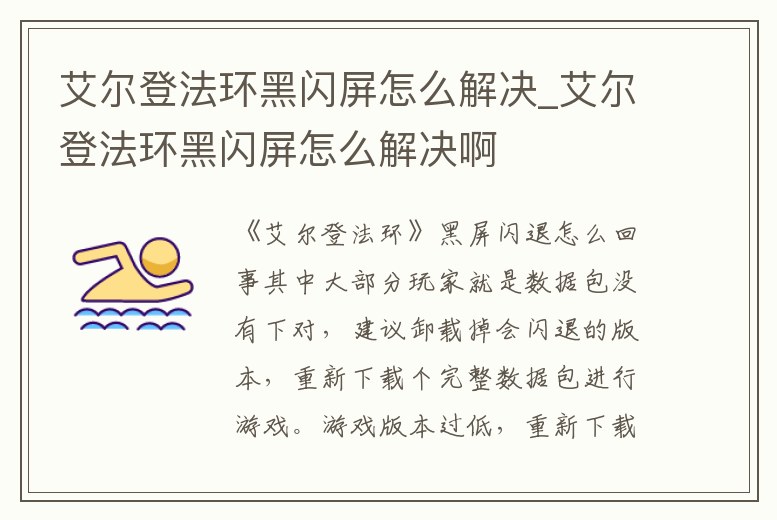 艾爾登法環黑閃屏怎么解決_艾爾登法環黑閃屏怎么解決啊
