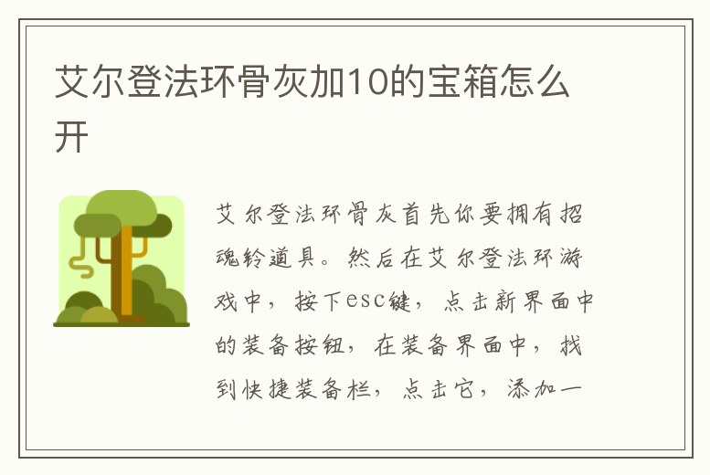 首先你要擁有招魂鈴道具。然后在艾爾登法環游戲中,按下esc鍵,點擊新界面中的裝備按鈕,在裝備界面中,找到快捷裝備欄,點擊它,添加一個自己擁有的骨灰?;氐街鹘缑婧?,按下R鍵,釋放骨灰道具后,即可召喚靈魂。