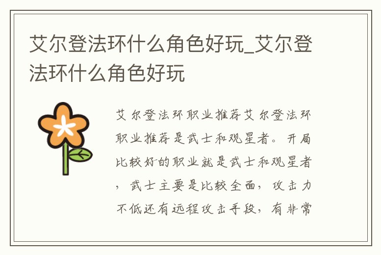 艾爾登法環職業推薦艾爾登法環職業推薦是武士和觀星者。開局比較好的職業就是武士和觀星者,武士主要是比較全面,攻擊力不低還有遠程攻擊手段,有非常高的體力條,缺點是血比較低,BOSS可能兩刀就死了。觀星者就是正宗的法爺,法師歷代都比近。2、艾爾登法環新手職業推薦新手開荒職業推