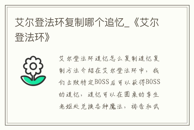 艾爾登法環復制哪個追憶_《艾爾登法環》