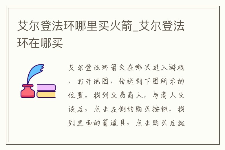 艾爾登法環(huán)哪里買火箭_艾爾登法環(huán)在哪買