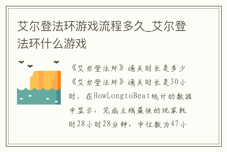艾爾登法環(huán)游戲流程多久_艾爾登法環(huán)什么游戲