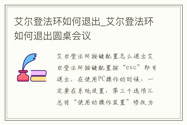 艾爾登法環按鍵配置按“esc”即可退出。在使用PC操作的時候,一定要在系統設置,第三個選項匯總將“使用的操作裝置”修改為“鍵盤、鼠標”。《艾爾登法環》是FromSoftware開發,萬代發行的的一款黑暗幻想風格ARPG游戲。