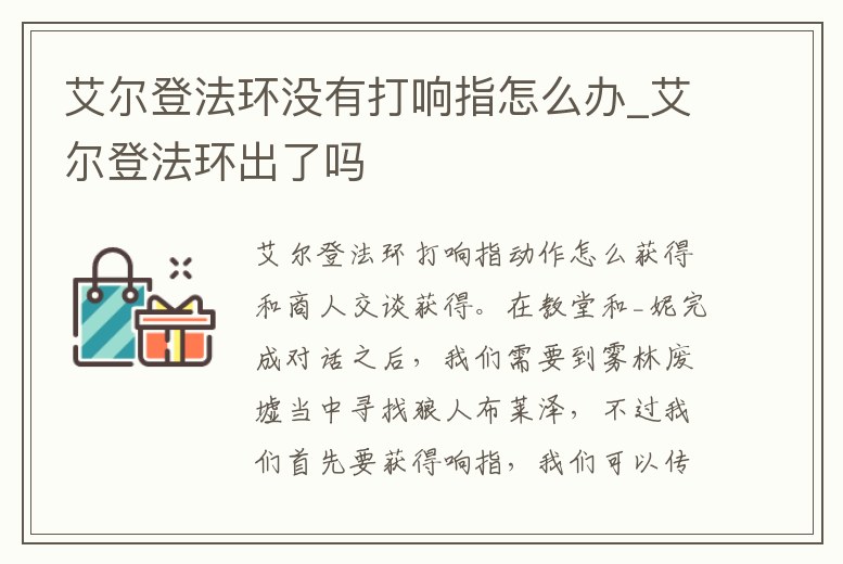 艾爾登法環沒有打響指怎么辦_艾爾登法環出了嗎