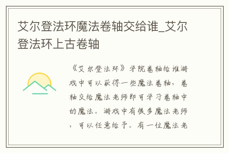艾爾登法環魔法卷軸交給誰_艾爾登法環上古卷軸