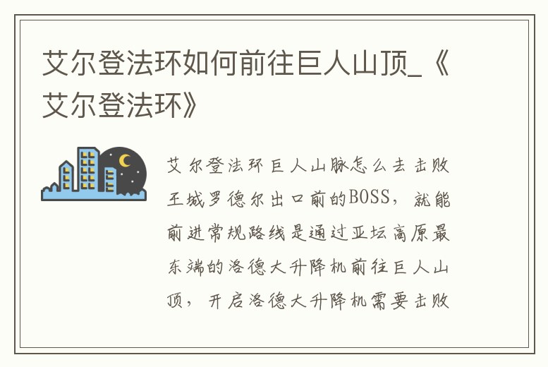 艾爾登法環如何前往巨人山頂_《艾爾登法環》