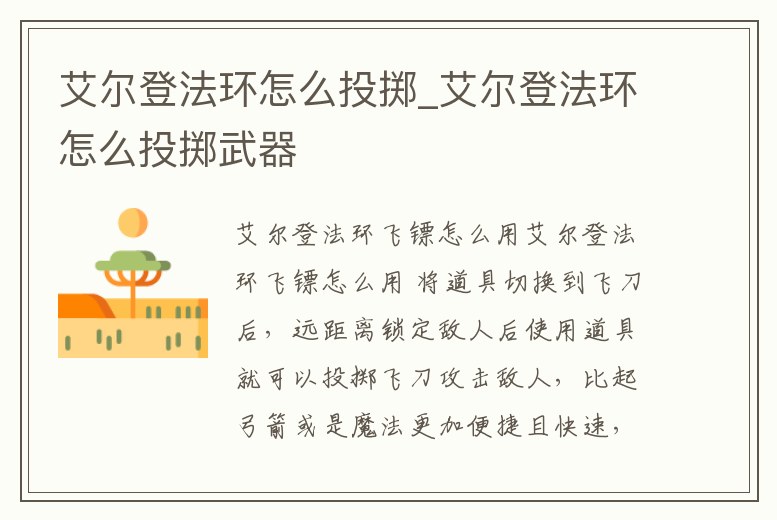艾爾登法環飛鏢怎么用 將道具切換到飛刀后,遠距離鎖定敵人后使用道具就可以投擲飛刀攻擊敵人,比起弓箭或是魔法更加便捷且快速,在初期傷害也不俗。在一些想要探路,避免被埋伏的情況下更是非常非常實用的道具。附圖可以看到。