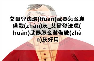 - 艾爾登法環(huán)武器怎么裝備戰(zhàn)灰_艾爾登法環(huán)武器怎么裝備戰(zhàn)灰好用