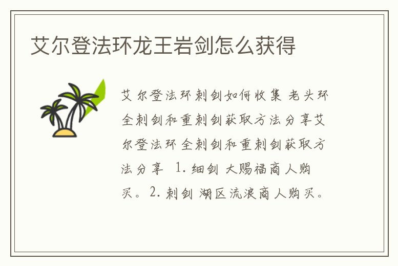 艾爾登法環龍王巖劍怎么獲得