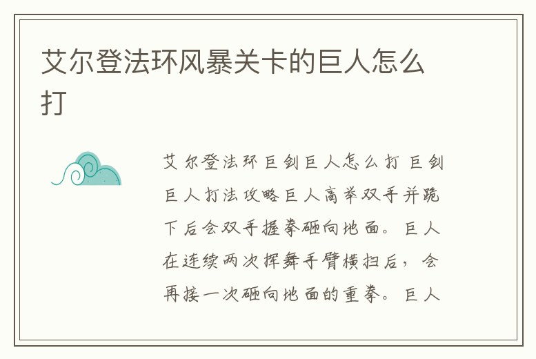 艾爾登法環巨劍巨人怎么打 巨劍巨人打法攻略