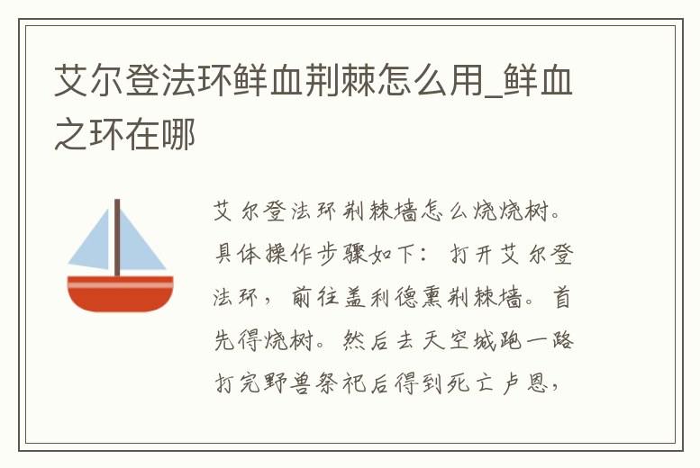 艾爾登法環鮮血荊棘怎么用_鮮血之環在哪