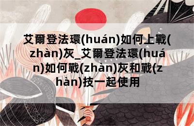 - 艾爾登法環(huán)如何上戰(zhàn)灰_艾爾登法環(huán)如何戰(zhàn)灰和戰(zhàn)技一起使用