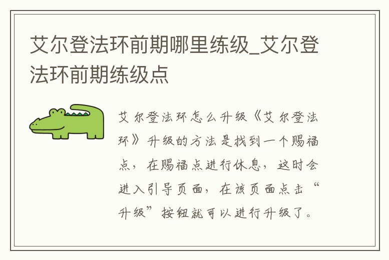 - 艾爾登法環(huán)前期哪里練級_艾爾登法環(huán)前期練級點(diǎn)