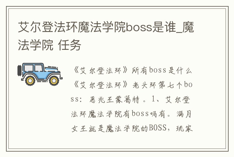 艾爾登法環魔法學院boss是誰_魔法學院 任務