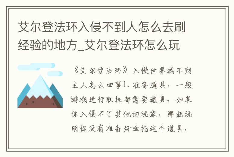 艾爾登法環(huán)入侵不到人怎么去刷經(jīng)驗(yàn)的地方_艾爾登法環(huán)怎么玩