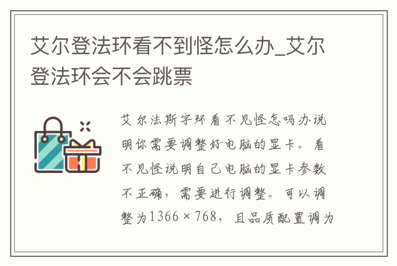 艾爾登法環看不到怪怎么辦_艾爾登法環會不會跳票