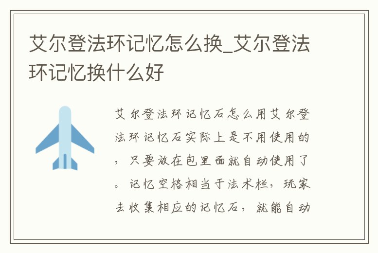 - 艾爾登法環(huán)記憶怎么換_艾爾登法環(huán)記憶換什么好