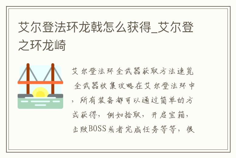 在艾爾登法環中,所有裝備都可以通過簡單的方式獲得,例如拾取,開啟寶箱,擊敗BOSS或者完成任務等等,很少有什么裝備玩家沒有辦法獲得,只是收集的多少而已,下面我就給大家帶來游戲的全武器獲取方法速覽,幫助大家完成武器方面的。
