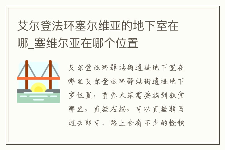 - 艾爾登法環(huán)塞爾維亞的地下室在哪_塞維爾亞在哪個(gè)位置