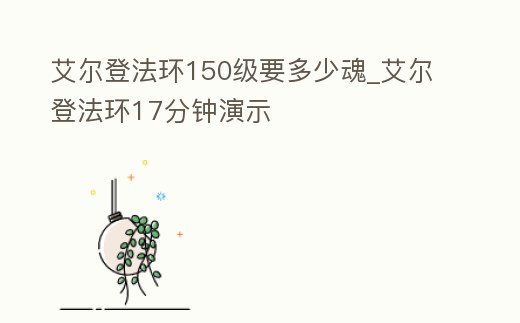 - 艾爾登法環(huán)150級要多少魂_艾爾登法環(huán)17分鐘演示