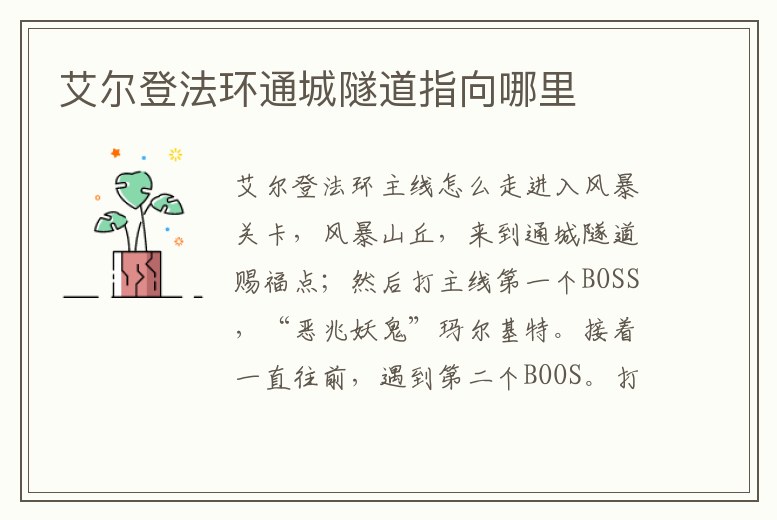 艾爾登法環的主線技巧:完成一開始的劇情殺,從初始之地出來后,首先前往賜福「關卡前方」,觸發梅琳娜的劇情并獲得「靈馬哨笛」,接著沿路來到 Boss「“惡兆妖鬼”瑪爾基特」前的賜福「通城隧道」,挑戰 Boss 成功與否。