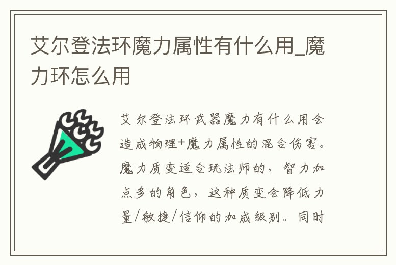 艾爾登法環魔力屬性有什么用_魔力環怎么用