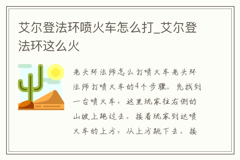 老頭環法師怎么打噴火車老頭環法師打噴火車的4個步驟。先找到一臺噴火車,這里玩家往右側的山坡上跑過去。接著玩家到達噴火車的上方,從上方跳下去。接著玩家直接使用鼠標左鍵進行攻擊噴火車。就可以直接秒殺掉噴火車了。1、艾爾登法環石盾可以擋泥頭車嗎艾爾登法環中的,噴火車是游戲里非常惡心的一種怪物,正面