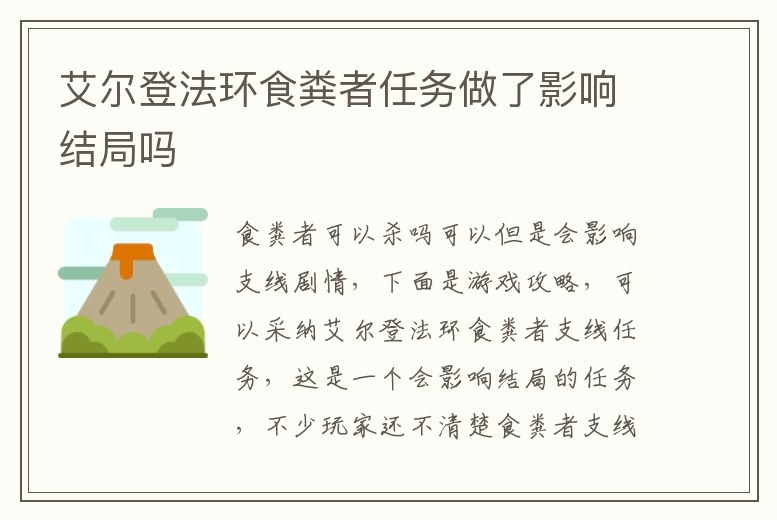 可以但是會影響支線劇情,下面是游戲攻略,可以采納艾爾登法環食糞者支線任務,這是一個會影響結局的任務,不少玩家還不清楚食糞者支線任務怎么做,下面一起來看一下游俠網小編帶來的艾爾登法環食糞者支線任務,希望可以幫。