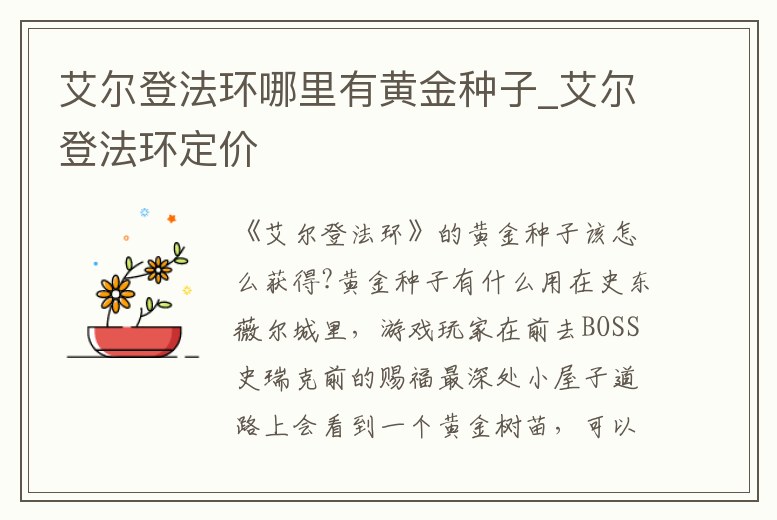 艾爾登法環哪里有黃金種子_艾爾登法環定價