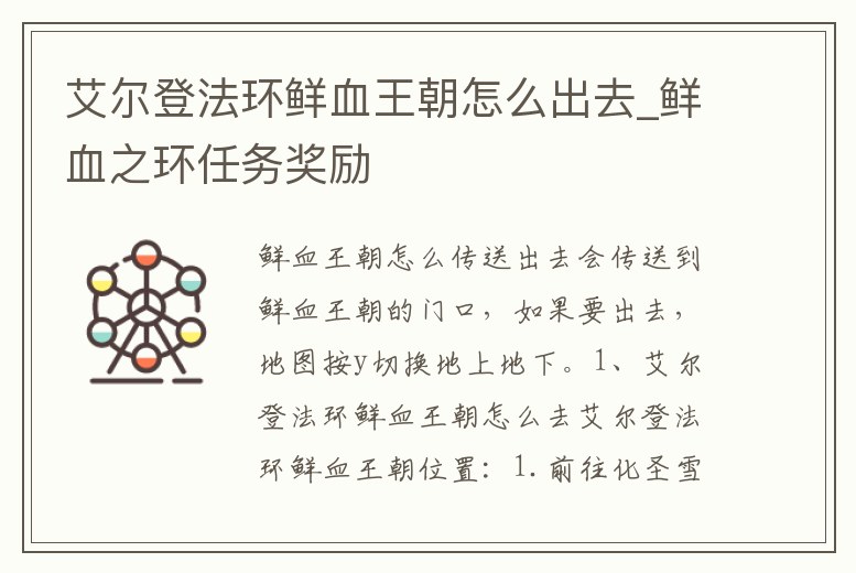艾爾登法環鮮血王朝怎么出去_鮮血之環任務獎勵