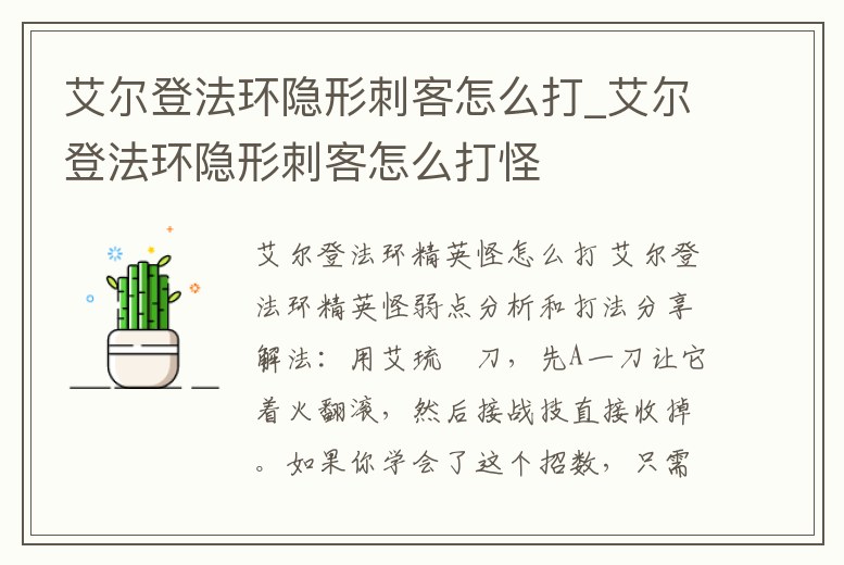 艾爾登法環隱形刺客怎么打_艾爾登法環隱形刺客怎么打怪