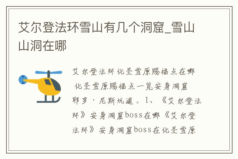 艾爾登法環雪山有幾個洞窟_雪山山洞在哪