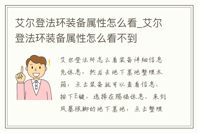 艾爾登法環裝備屬性怎么看_艾爾登法環裝備屬性怎么看不到