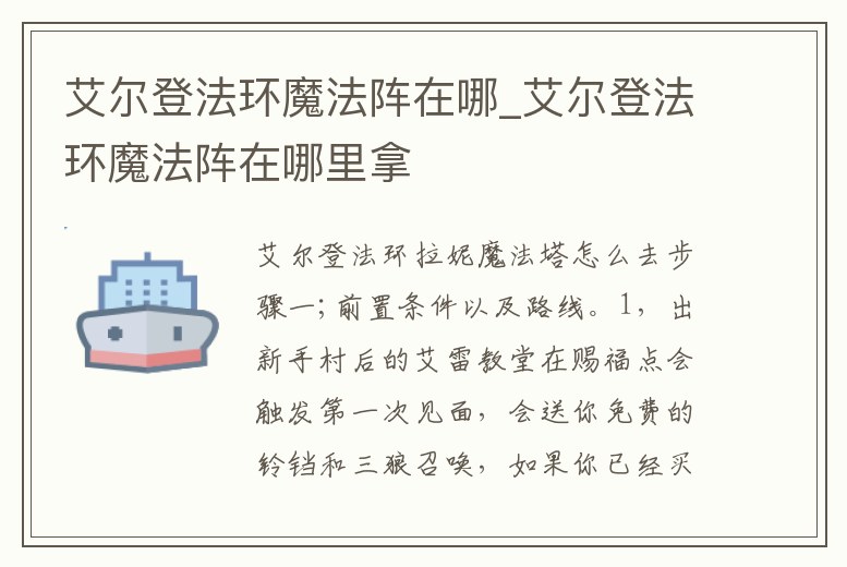 - 艾爾登法環(huán)魔法陣在哪_艾爾登法環(huán)魔法陣在哪里拿