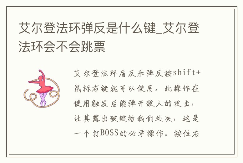 艾爾登法環彈反是什么鍵_艾爾登法環會不會跳票