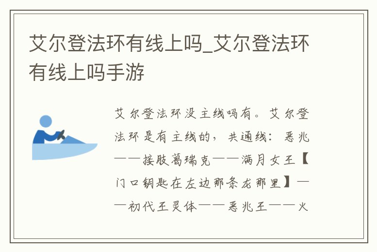 - 艾爾登法環(huán)有線上嗎_艾爾登法環(huán)有線上嗎手游