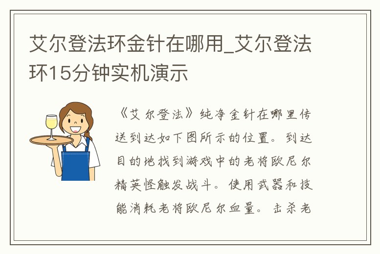 艾爾登法環金針在哪用_艾爾登法環15分鐘實機演示