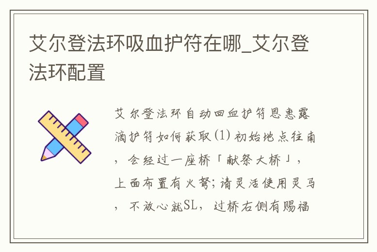 艾爾登法環吸血護符在哪_艾爾登法環配置