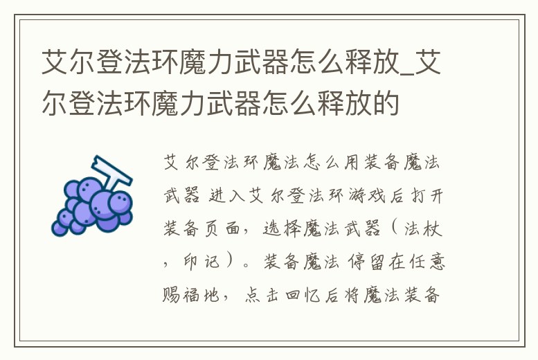 艾爾登法環魔力武器怎么釋放_艾爾登法環魔力武器怎么釋放的