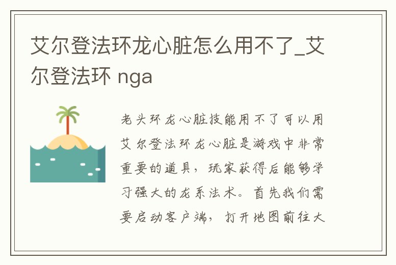- 艾爾登法環(huán)龍心臟怎么用不了_艾爾登法環(huán) nga