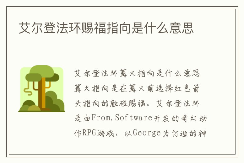 篝火指向是在篝火前選擇紅色箭頭指向的觸碰賜福。艾爾登法環(huán)是由From.Software開發(fā)的奇幻動作RPG游戲,以George為打造的神話為基礎(chǔ),在深奧而龐大的世界舞臺中,充滿著未知與威脅等待玩家探索與發(fā)現(xiàn)。