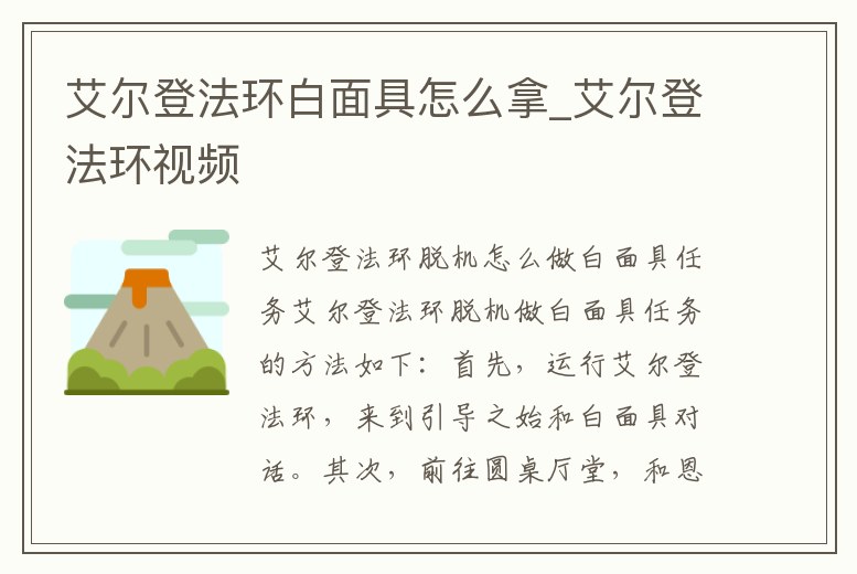 - 艾爾登法環(huán)白面具怎么拿_艾爾登法環(huán)視頻