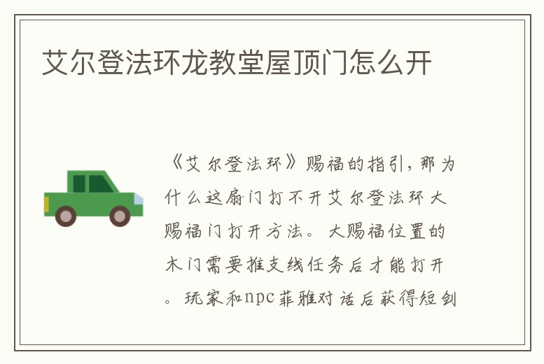艾爾登法環大賜福門打開方法。大賜福位置的木門需要推支線任務后才能打開。玩家和npc菲雅對話后獲得短劍,再去大賜福完成死眠少女支線后就會打開了。《艾爾登法環》:是一款由日本開發商From Software開發、Bandai Nam。