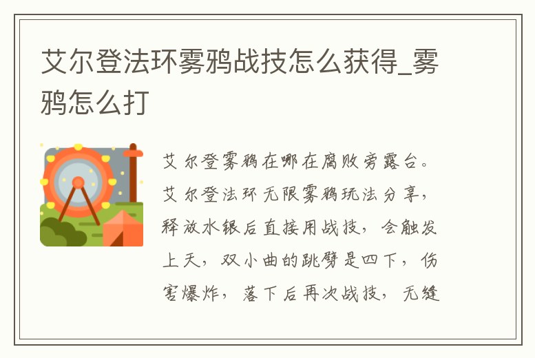 - 艾爾登法環(huán)鳥怎么打_艾爾登法環(huán)演示