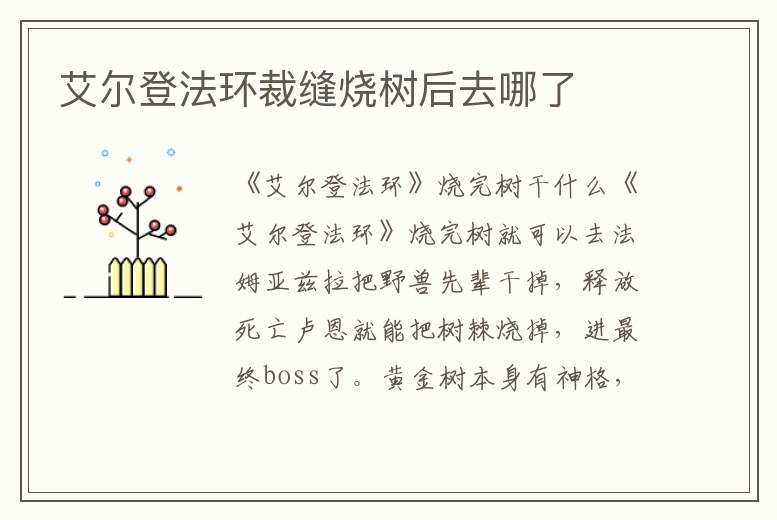 1、艾爾登法環燒完樹之后呢