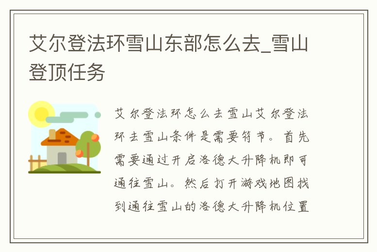 艾爾登法環雪山東部怎么去_雪山登頂任務