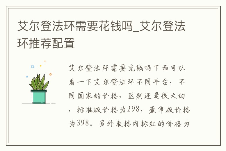 艾爾登法環需要花錢嗎_艾爾登法環推薦配置
